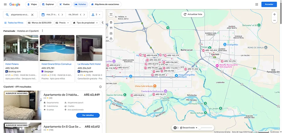 Alojamiento, turismo y gastronomía ¿Qué hacer y donde alojarse durante el evento? Turismo Te compartimos algunos links donde podes ver actividades en la zona. Turismo Cipolletti - Río Negro Turismo Cipolletti Hoteles y Alojamientos en Cipolletti Hoteles y Alojamientos en Neuquén Restaurantes y cafeterías en Cipolletti Restaurantes y cafeterías en Neuquén alojamiento y gastronomía Dónde alojarse y comer durante el evento Alojamientos entre el 21 y 24 de octubre 2025